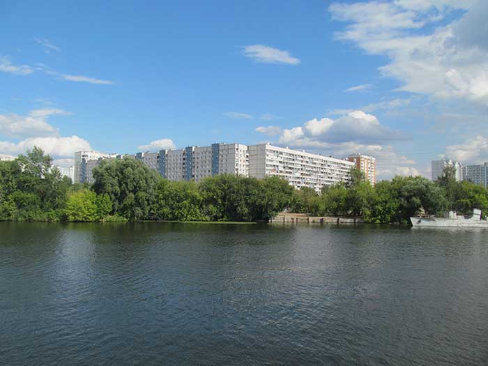 На противоположном берегу Москва - реки - панельные дома 80-х годов. Эта застройка никуда не денется.