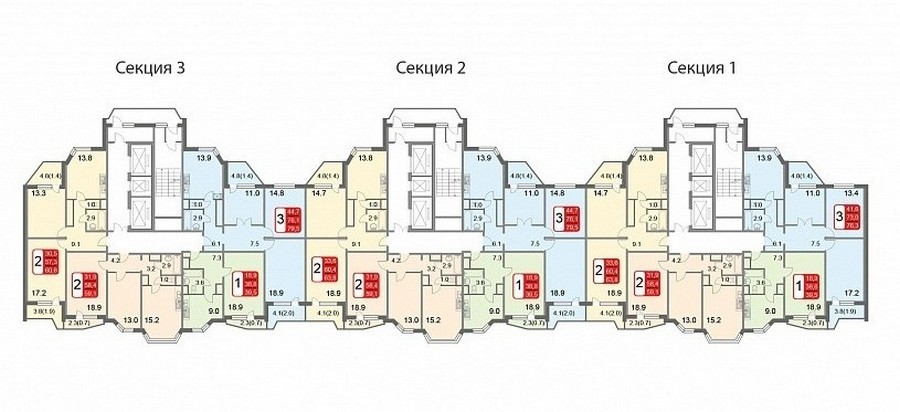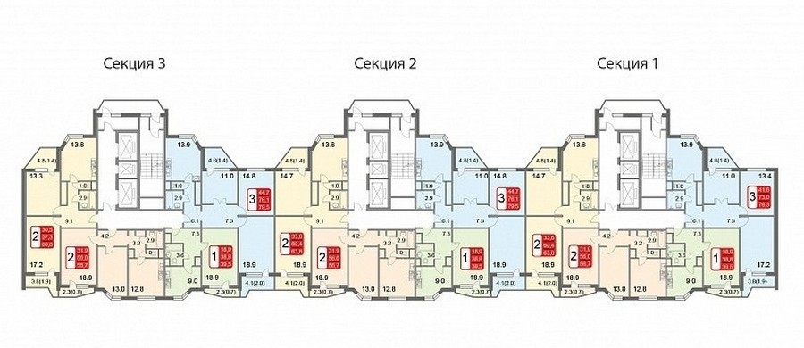 Площадь квартир:29.3 — 76,9 м2