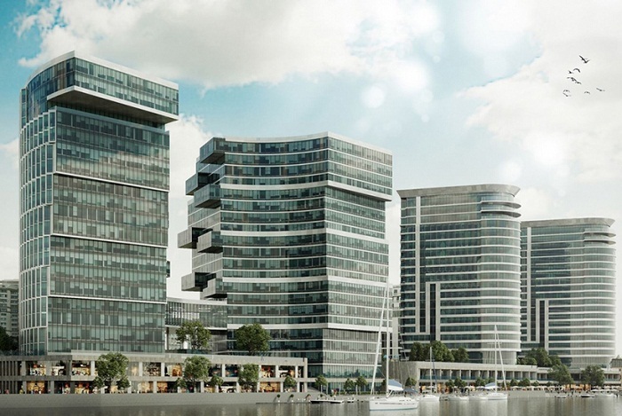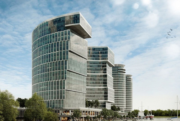 Участок застройки занимает территорию в пять гектар. Жилая часть комплекса включает четыре «башни» высотой от 11 до 20 этажей. Здания привлекают внимание сплошным остеклением и необычной конфигурацией.
