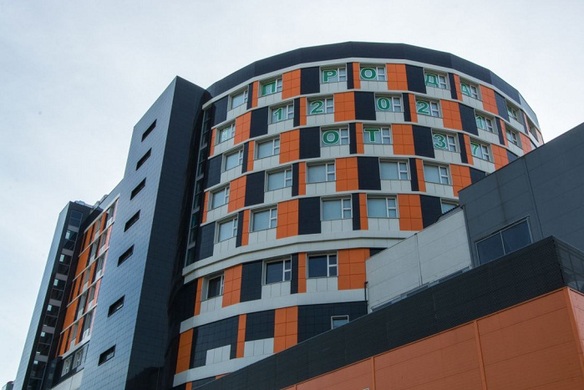 Жилая часть комплекса представлена монолитным 10-этажным корпусом- «башней», привлекающим внимания яркими элементами фасадов и панорамным остеклением.