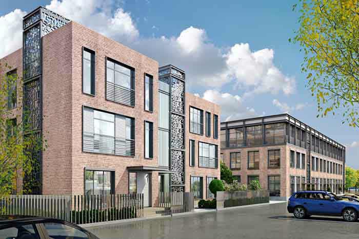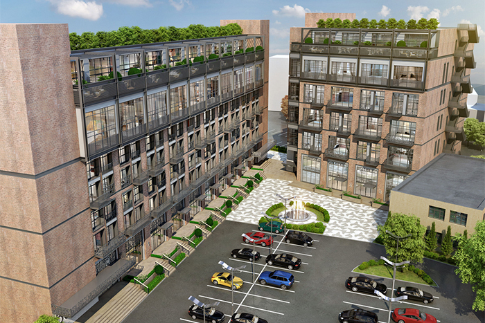 В комплексе на территории в 2,5 гектара расположились пять зданий — три 3-этажных и два 7-этажных. Отделка фасадов выдержана в классическом стиле loft - красный кирпич и клинкерная плитка, использование кованых и деревянных элементов.