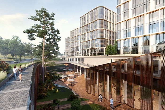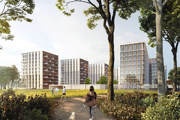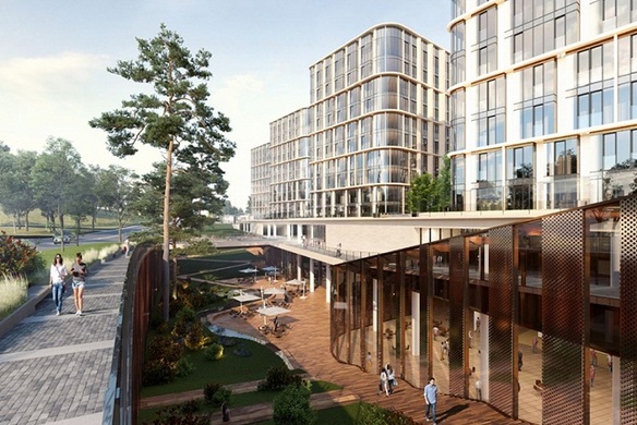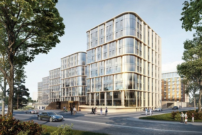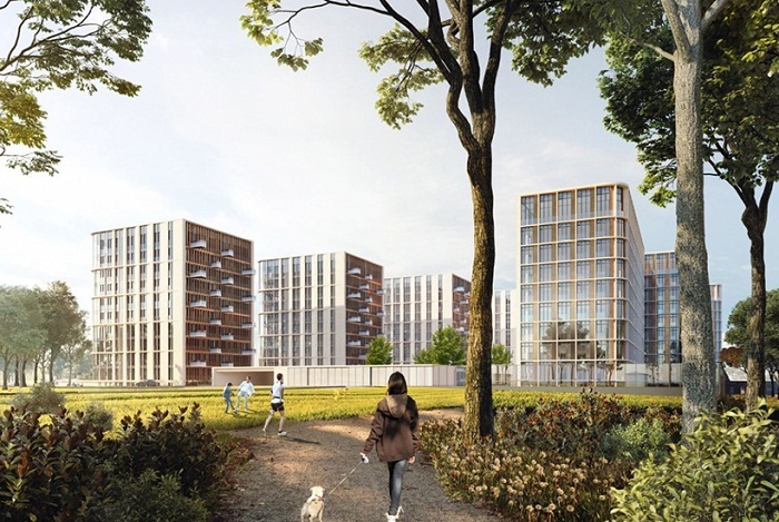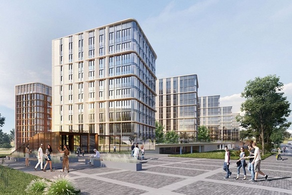 На территории в четыре гектара будет построено восемь монолитных зданий — пять 11-этажных «башен» и три двухсекционных 10-этажных корпуса. Авторство архитектурной концепции принадлежит известному столичному бюро — яркий «футуристический» стиль обещает сделать комплекс настоящим украшением района.