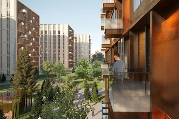 Экологическая составляющая весьма неоднозначна — участок застройки располагается между огромным зеленым массивом Парка Победы и ж/д путями — эту проблему предполагается решить за счет установки шумозащитных экранов.