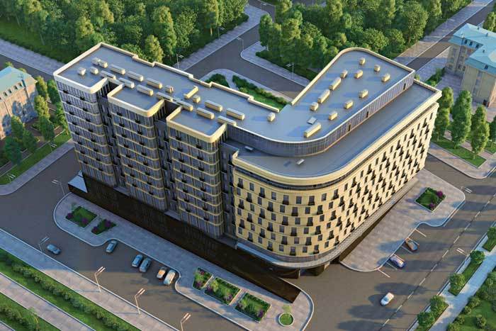 В девятиэтажном здании, возводимом по оригинальному проекту, предлагается новый формат недвижимости - сьюты. Площадь их варьируется от 20.4 до 92.4 кв. метров. Сдаются они полностью готовыми к приему владельцев. Комплекс имеет статус гостиницы, поэтому в сьютах можно оформить временную регистрацию.