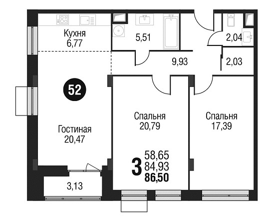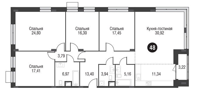 Площадь квартир:49 — 138 м2