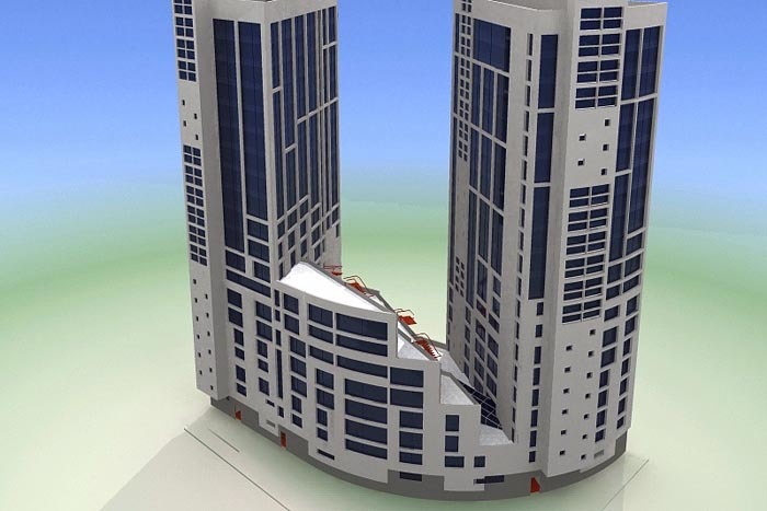 Новый комплекс — монолитно-кирпичное здание переменной этажности (2- 20 этажей), привлекающее внимание необычной конфигурацией и огромными панорамными окнами.