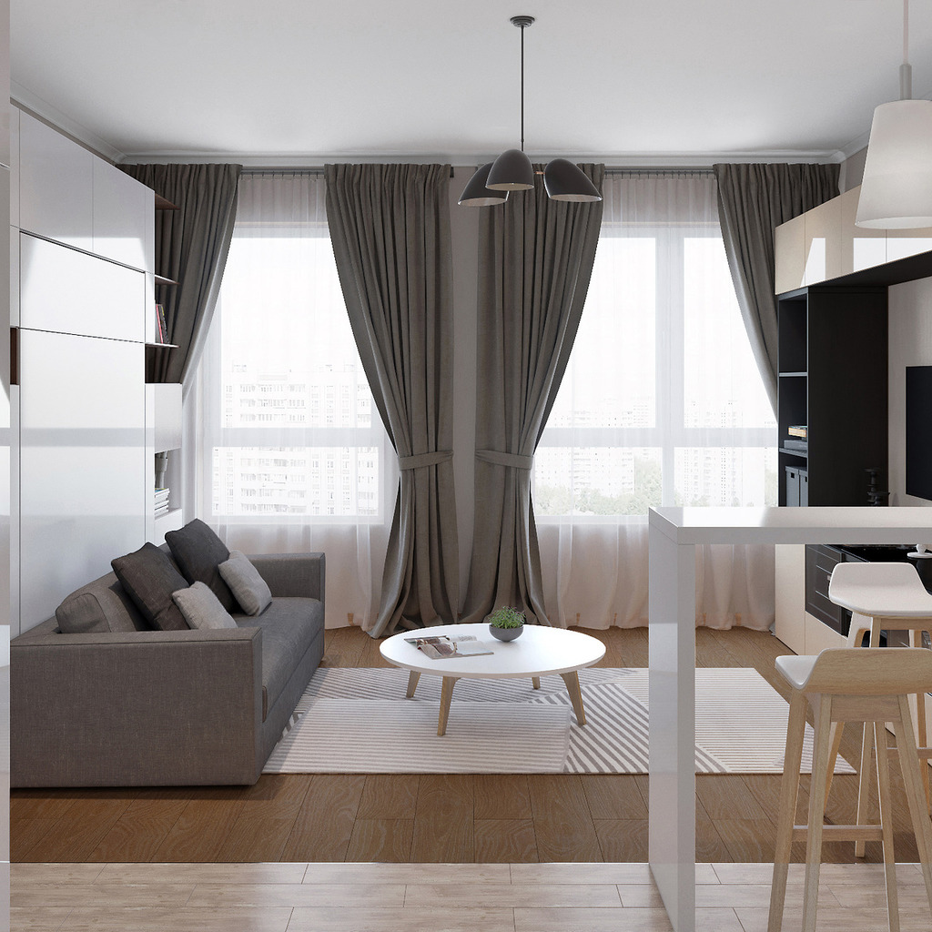 В некоторые однокомнатные квартиры представляют собой то, что иногда называют «евро-двушками»: большая кухня-гостиная и маленькая спальня.