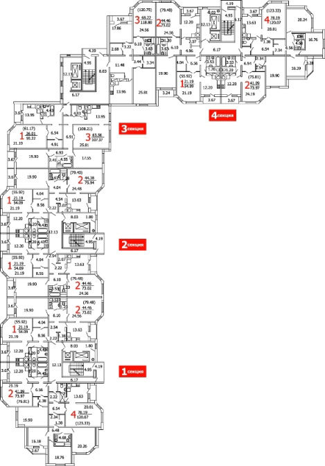Это 272 1-3-комнатные квартиры, в которых монтируются двухкамерные стеклопакеты, организовываются эркеры. Площадь помещений колеблется от 44,6 до 90,7 кв.м. Улучшенная планировка позволила увеличить размеры гостиных и кухонь (до 16 кв.м.) Высота потолков достигает 3 м.