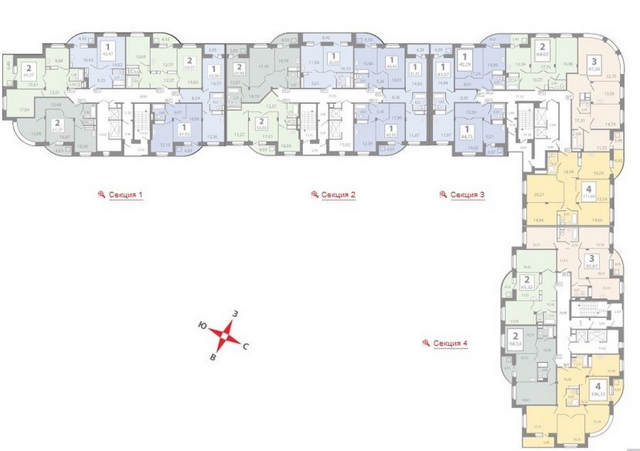 Территория застраивается многосекционными корпусами высотой от 14 до 24 этажей — монолитными, монолитно-кирпичными и современной панельной серии. Всего запланировано 11 домов.