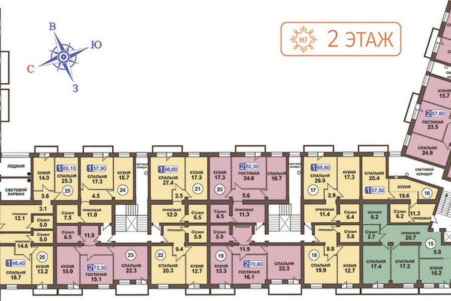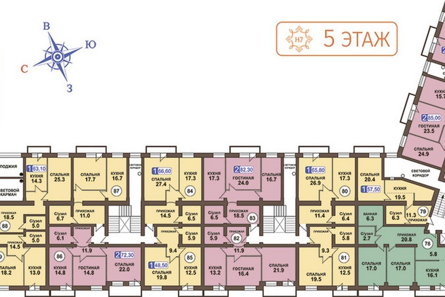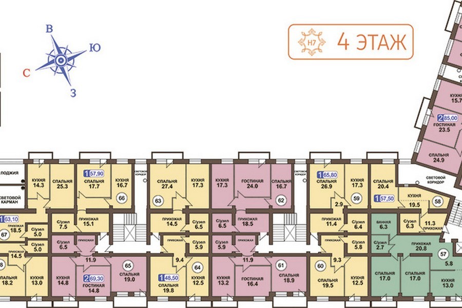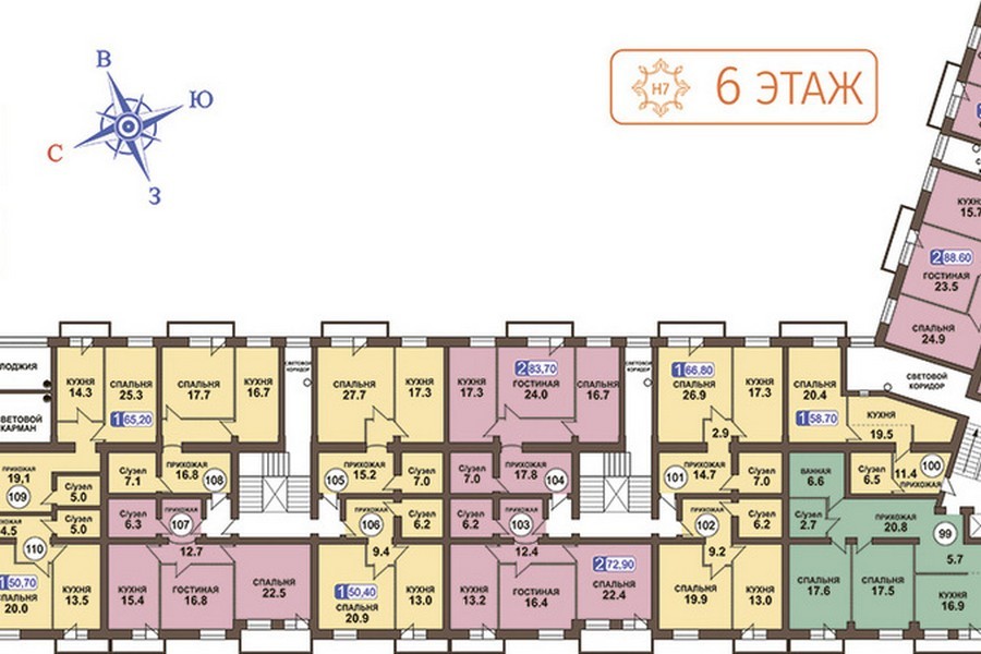 Площадь квартир:41.4 — 111.4 м2