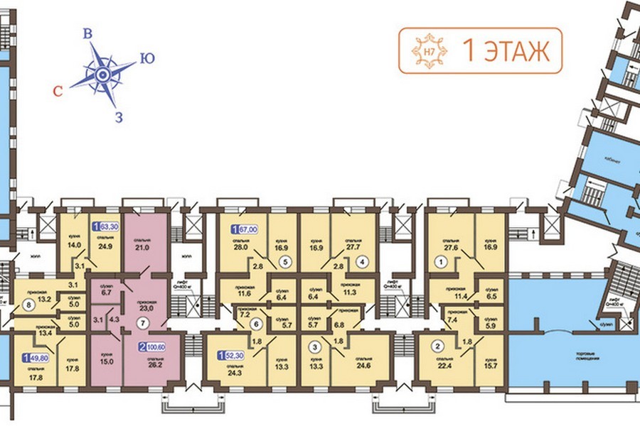ЖК «Нагорная, 7» расположен в районе Котловка, станция метро «Нагорная». Семиэтажное здание с монолитным каркасом и кирпичными стенами состоит из шести секций. Возводится дом по индивидуальному проекту. Первый этaж – нежилой. Площадь отведена под магазины и выставочный центр.