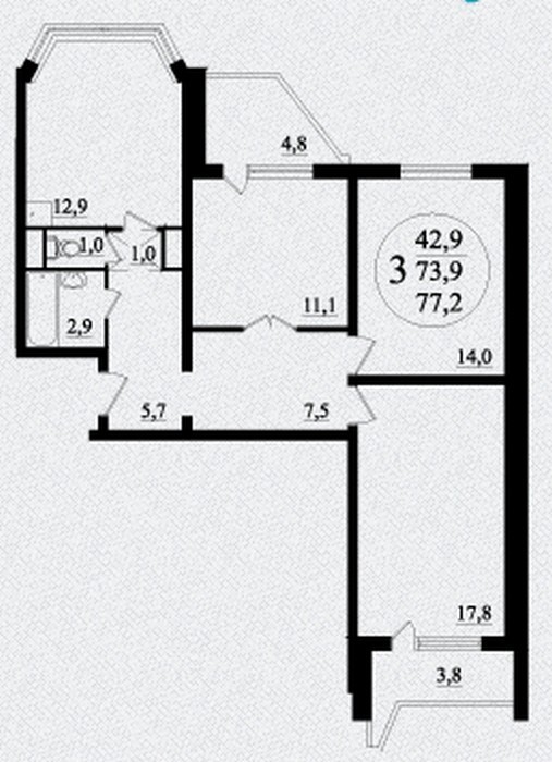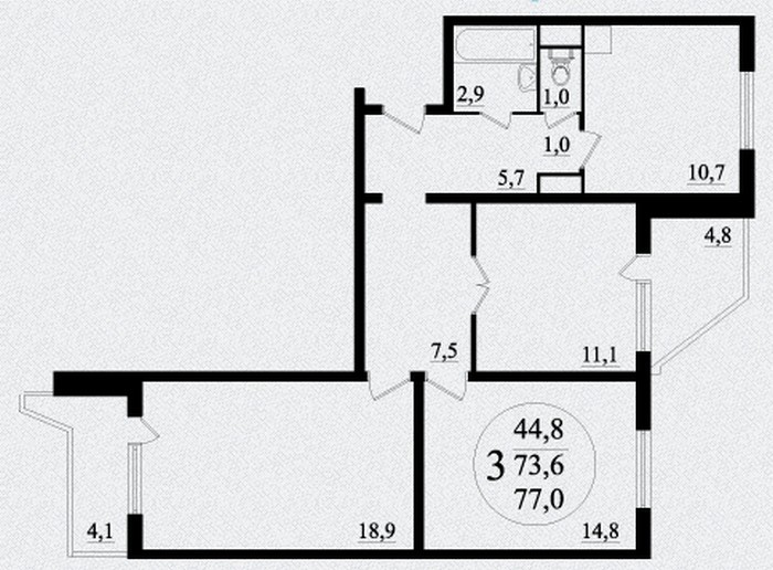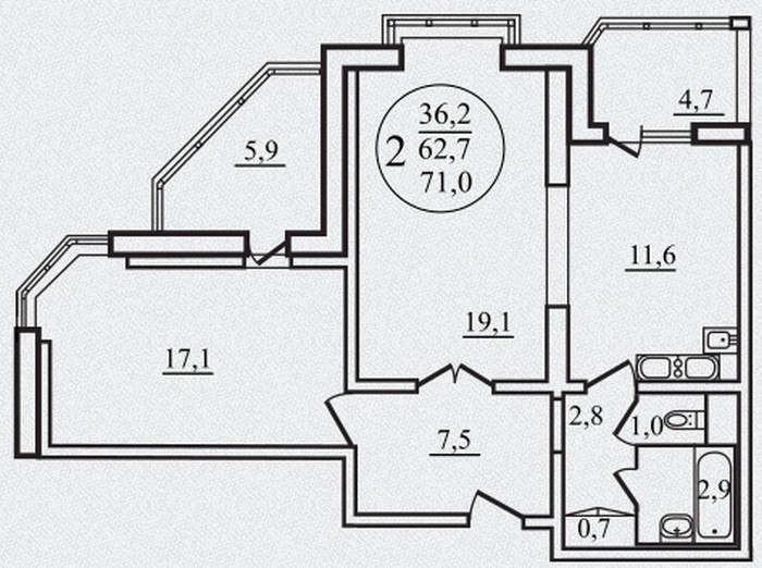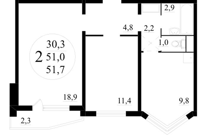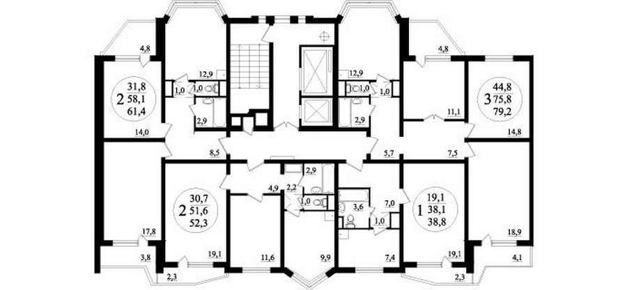 | Тип квартиры | Минимальная площадь, м2 | Максимальная площадь, м2 |
