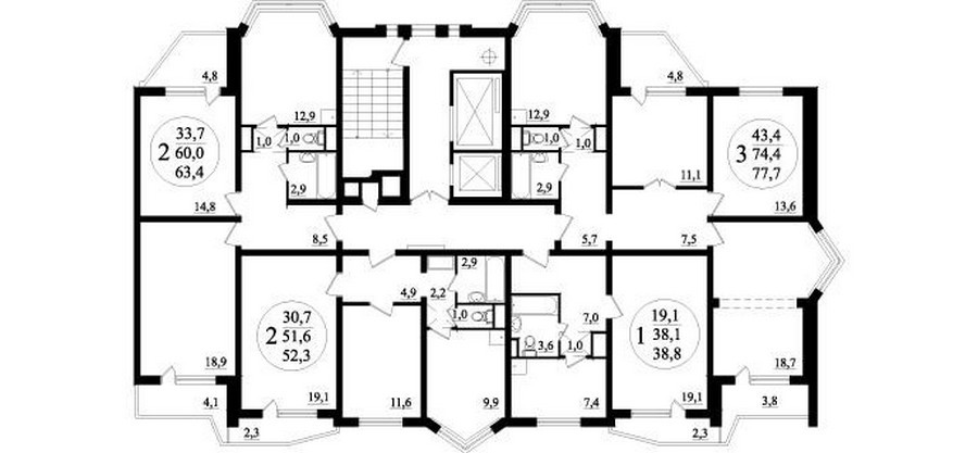 Квартиры (а всего их в комплексе будет около 6500) представлены широким выбором планировок и площадей: