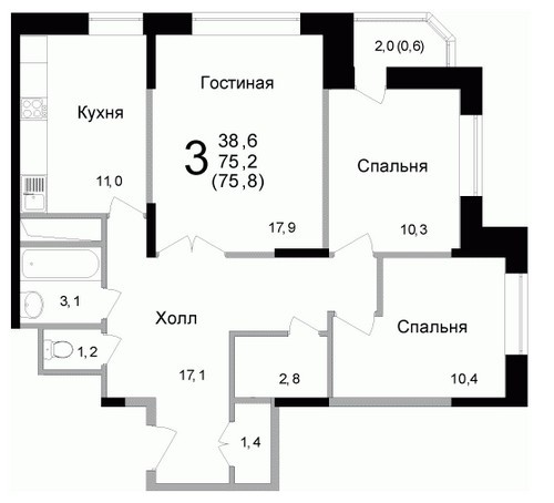 Высота потолков:2.7