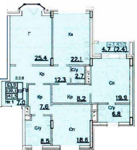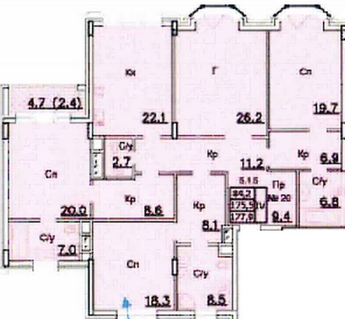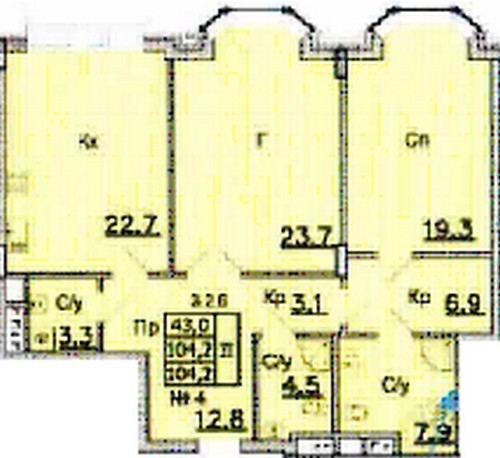 Площадь квартир:104 — 250 м2