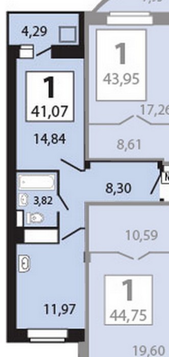 | 1-комнатные | 41 | 42,15 | 21 | 21 |