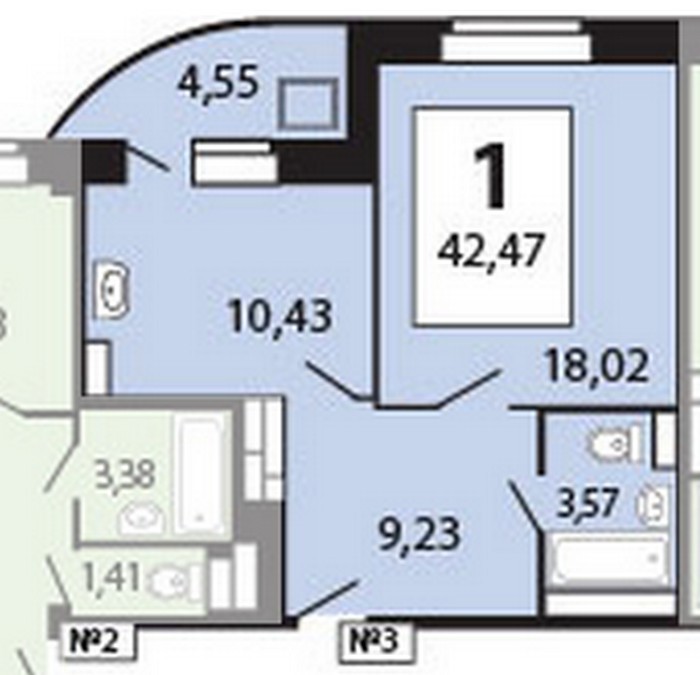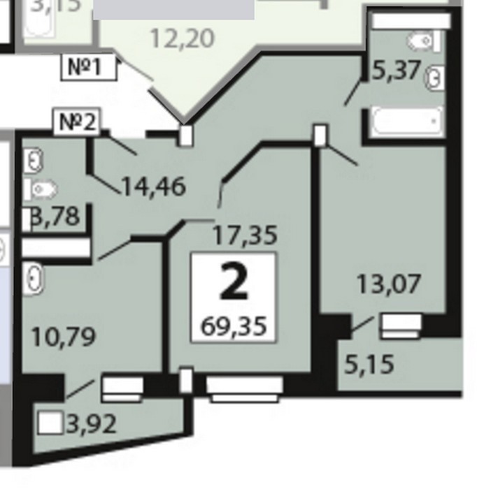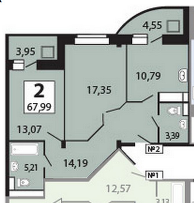 | 2-комнатные | 54,7 | 69,3 | 33,5 | 36,9 |