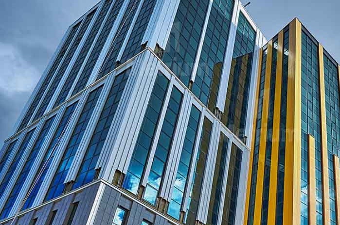 Внешний облик нового ЖК необычен — яркие разновысотные (до 17 этажей) корпуса сложной конфигурации со сплошным остеклением фасадов создают оригинальный архитектурный ансамбль. Из окон открываются красивейшие виды речной поймы.
