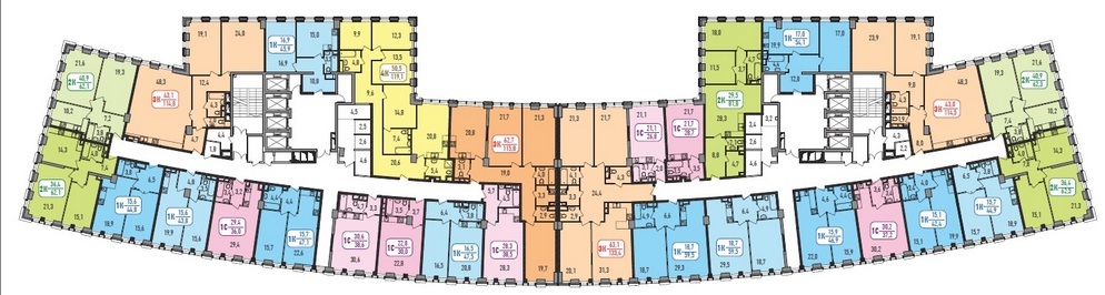 На официальном сайте можно подробно ознакомиться с расположением квартир в секциях, точной площадью жилых и нежилых помещений