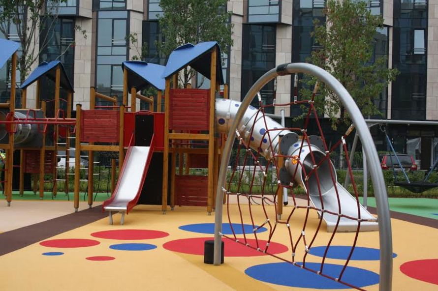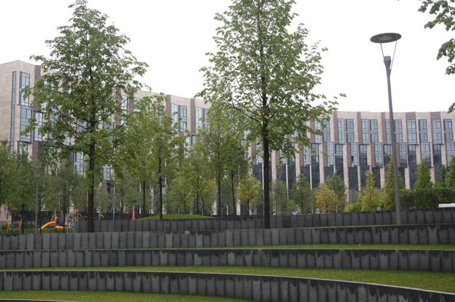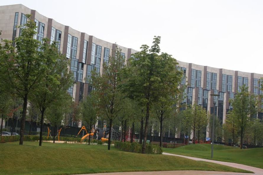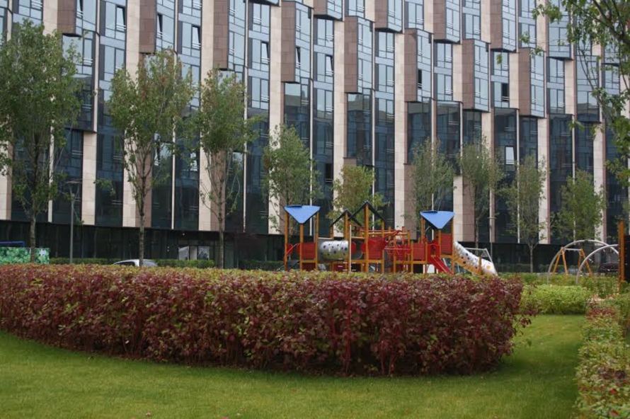 Корпуса к тому же будут окружены ландшафтным парком с каскадом прудов, тенистыми аллеями и зонами отдыха. Общественные зоны займут около 7 Га из общей площади в 16 Га, У жителей будет собственный выход на территорию