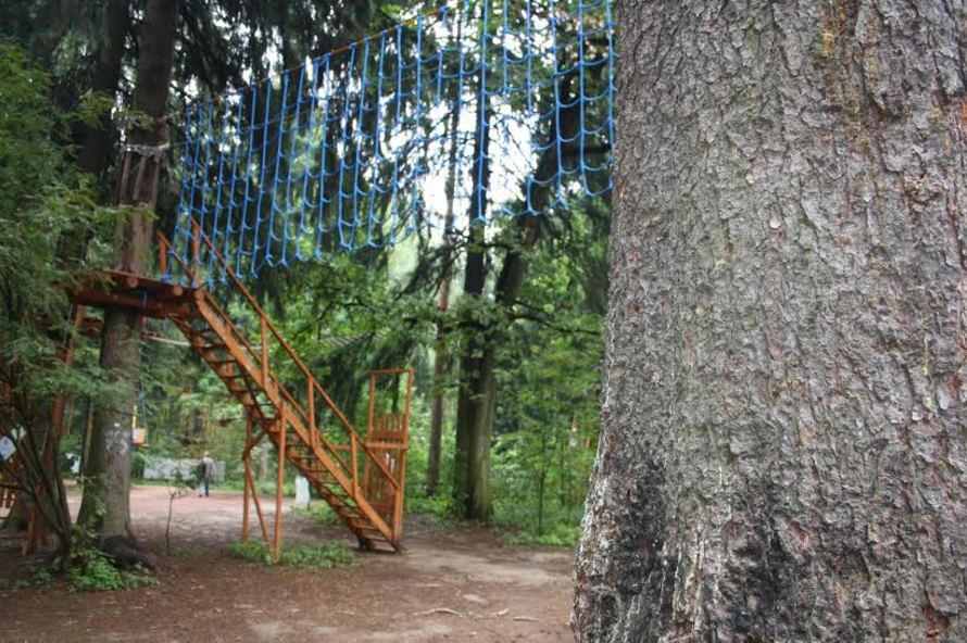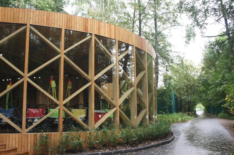 Офисы спортивных учрежденнй находятся в уютном деревянном домике с террасой, недалеко от входа в парк. Спортом можно заниматься и в большом