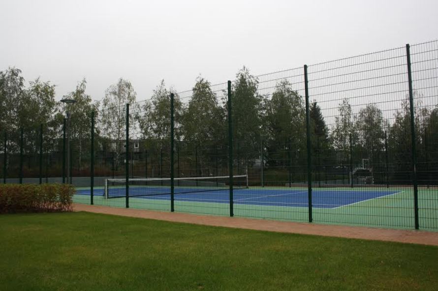 За вторым рядом корпусов находится спортивная зона с теннисным кортом, футбольным полем, многофункциональной спортплощадкой. А дальше пролегает река Сетунь, с многоярусной набережной и мостками, выполненными из массива лиственницы из питомников с берегов Байкала.