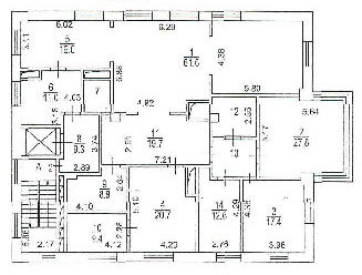 Теперь на первых-вторых этажах располагается огромная двухуровневая квартира, площадью в 326-ти квадратных метров. Такая внушительная площадь позволила при планировке квартиры учесть создание двух просторных залов. Отдельного упоминания заслуживает необычно высокий потолок (3,3 места — на первом этаже, 3,6 метра — на втором).