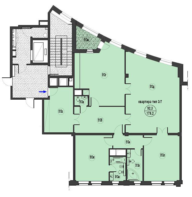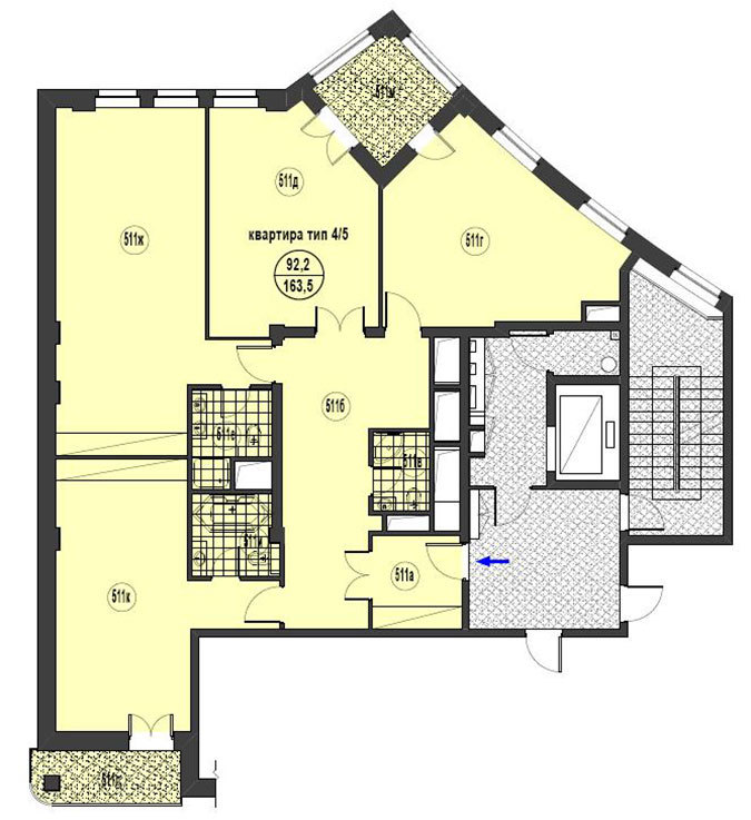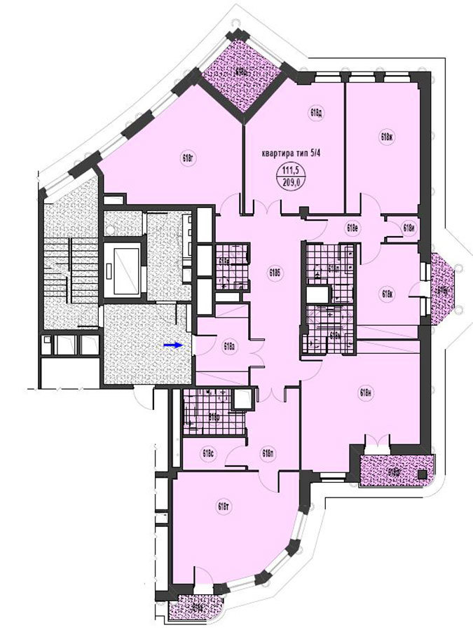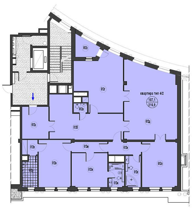 Площадь квартир:95 — 186 м2