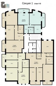 1-3-комнатные квартиры свободной планировки площадью от 88,9 до 128,9 кв. м. В апартаментах выполнена электроразводка, установлены двухкамерные стеклопакеты, предусмотрено наличие ниш рядом с квартирами для монтирования кондиционеров. Высота потолков – 3 м. В подъездах функционируют лифты системы OTIS.