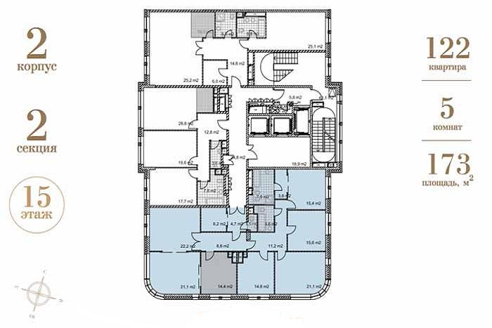 Под ним с 15 этажа начинаются 5-комнатные квартиры чуть меньшей площади - без терасы и камина. Расчетная стоимость - от 60 млн. руб.
