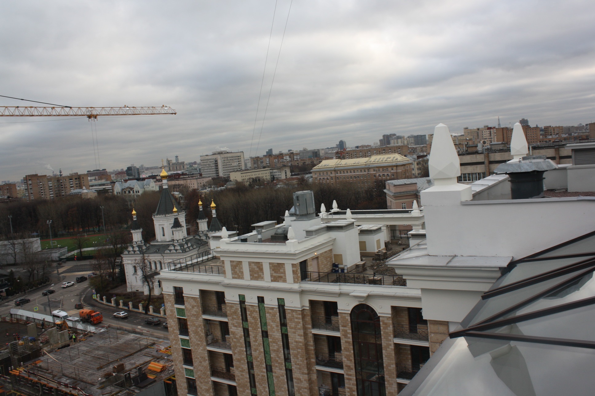 Виды с верхних этажей практически со всех сторон по-своему интересны – где-то можно увидеть высотку МИДа и Останкинскую башню, с других сторон открываются виды на парковые зоны, Лужники или здание Академии наук, хотя, есть и индустриальные вкрапления. Виды же на сквер Девичьего поля или на расположенный прямо у комплекса белоснежный храм Михаила Архангела — прерогатива не только жителей верхних этажей.