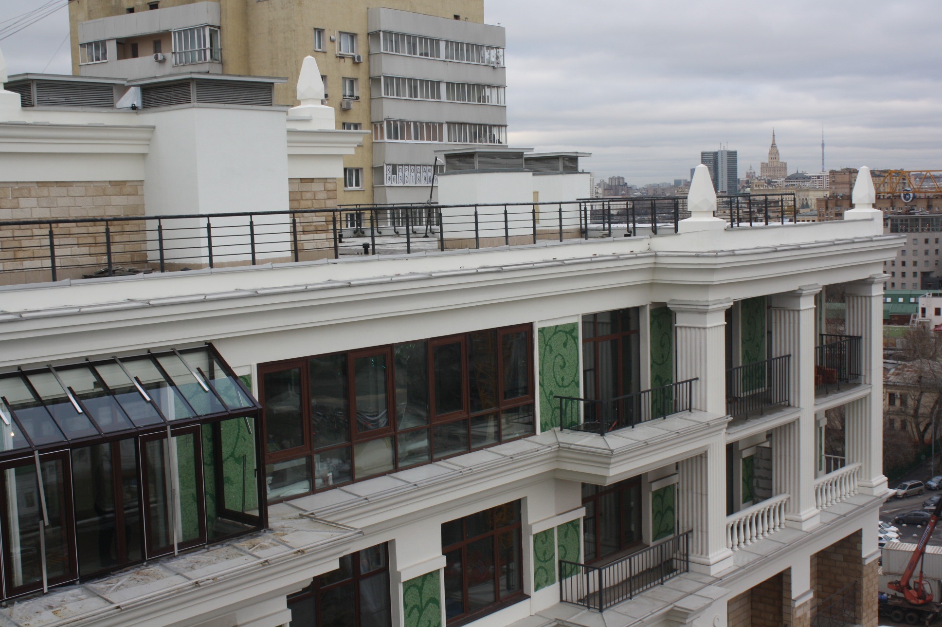 Квартиры отличаются большими окнами с деревянным профилем. У части жилья на последних этажах имеются просторные открытые террасы, площадь которых может достигать 200 кв. м, но сейчас таких предложений уже нет на первичном рынке. Остальное жилье оборудовано лоджиями, причем, те, которые смотрят во двор – открытые, а на улицу — застекленные.