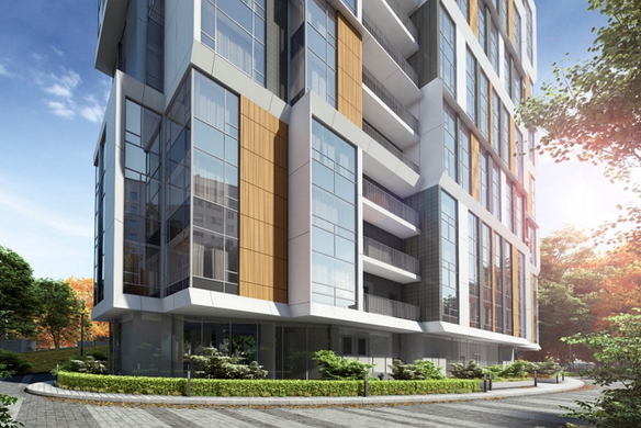 16-этажное монолитное здание возводится по оригинальному проекту, разработанному известным архитектурным бюро и обещает стать настоящим украшением района — стильная отделка фасада с элементами сплошного остекления, необычная конфигурация.