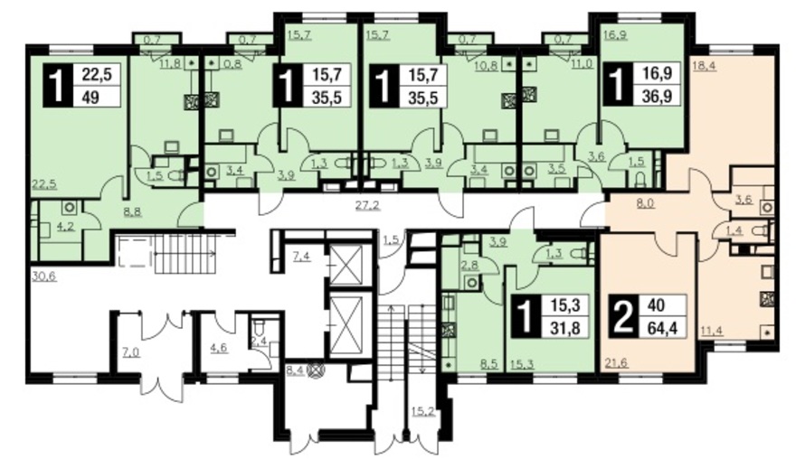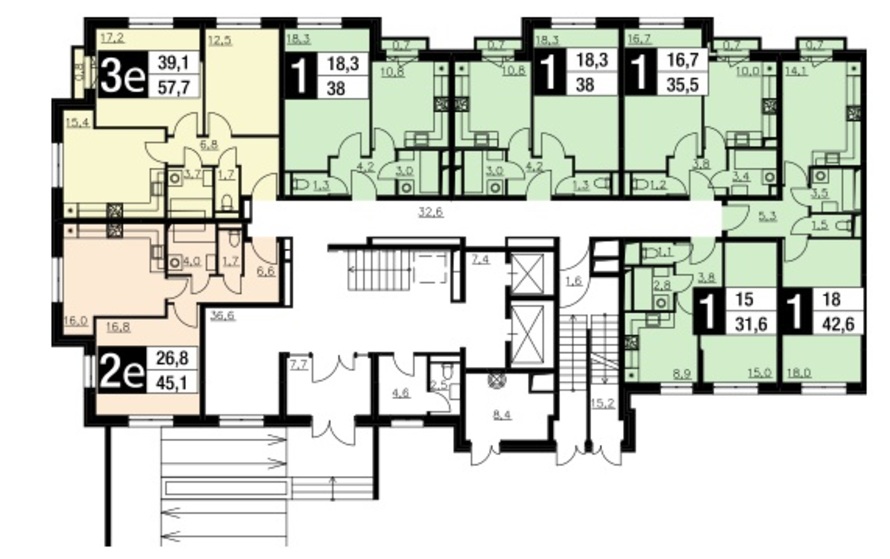 На каждом этаже располагается от 5 до 8 квартир. Объединения, в силу монолитных перегородок, не предполагается.