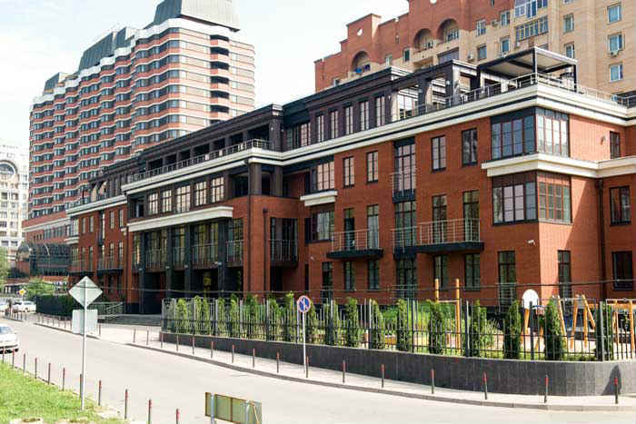 Комплекс заметен издалека, и это не удивительно – внешняя отделка здания выполнена с использованием меди, облицовочного кирпича, натурального камня, благодаря чему зданию присуще благородство классики и особый английский шарм.