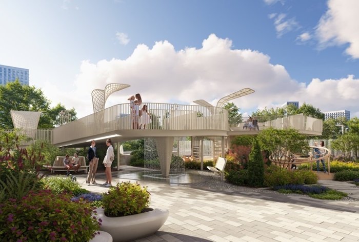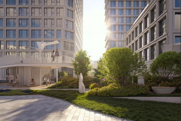 Инфраструктура комплекса включает двухуровневый подземный паркинг, коммерческие помещения нижних этажей — там откроются магазины и сервисные службы, коворкинг, свой детский сад. Закрытая придомовая территория озеленяется, оборудуются спортивные и детские площадки.