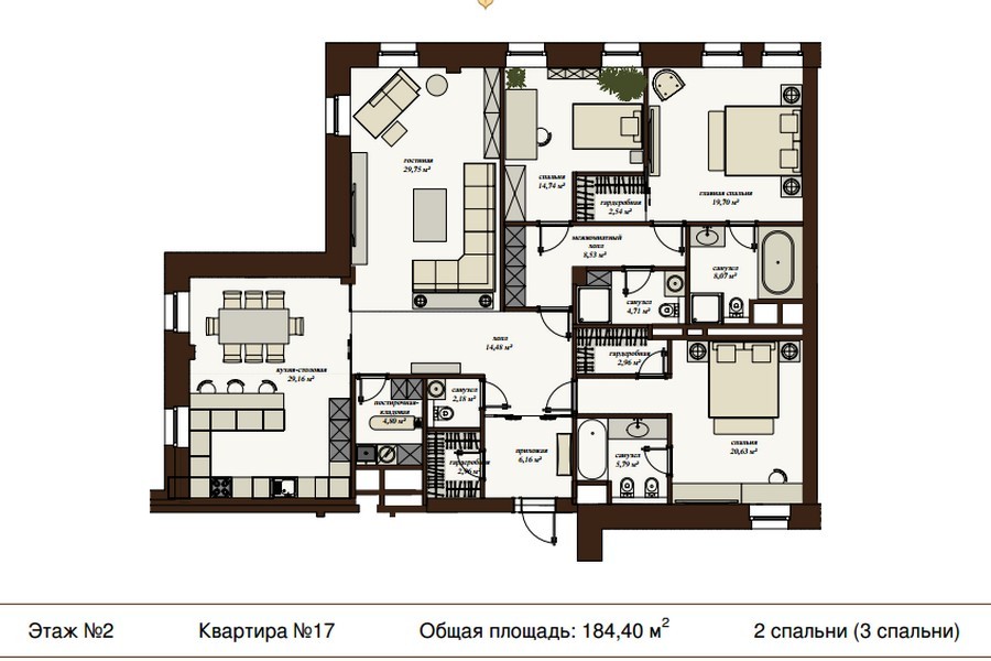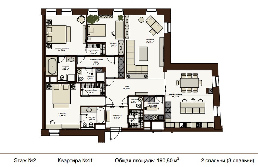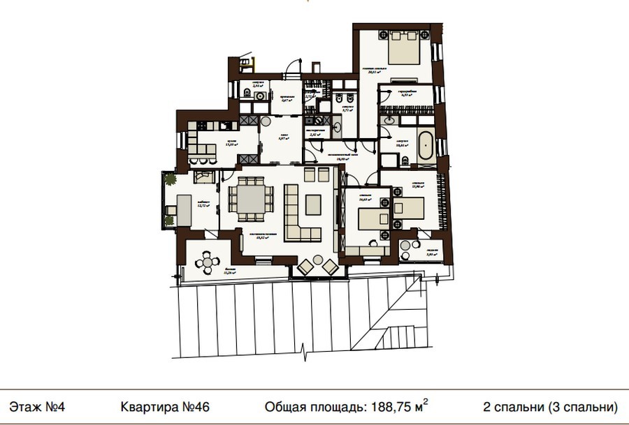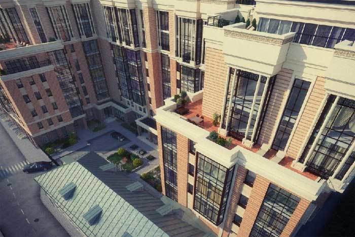 Внешние стены дома облицованы клинкерным кирпичом песочного цвета. Жилой фонд новостройки – 46 квартир площадью 108-300 кв.м и 5 пентхаусов с выходом на эксплуатируемую крышу.