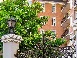 Внутренний двор полностью отведен под зону отдыха — газоны и цветочные клумбы, фонтаны и беседки со скамьями.