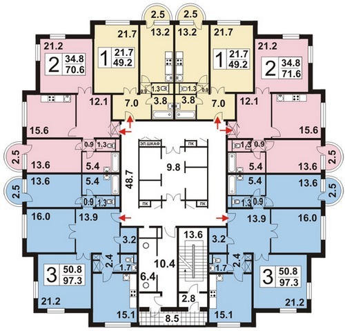 Небольшое количество двух- и трехкомнатных квартир. Квартир без отделки.