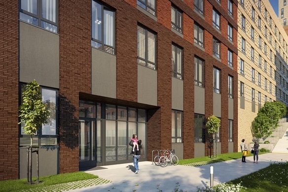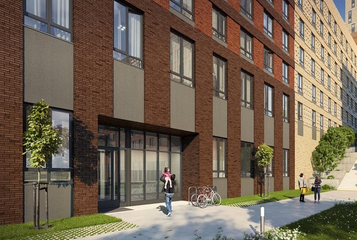 Входные группы просторные, с помещениями для хранения велосипедов и колясок и комнатами консьержей. Удобны и входы в подъезды, оборудованные на уровне земли.