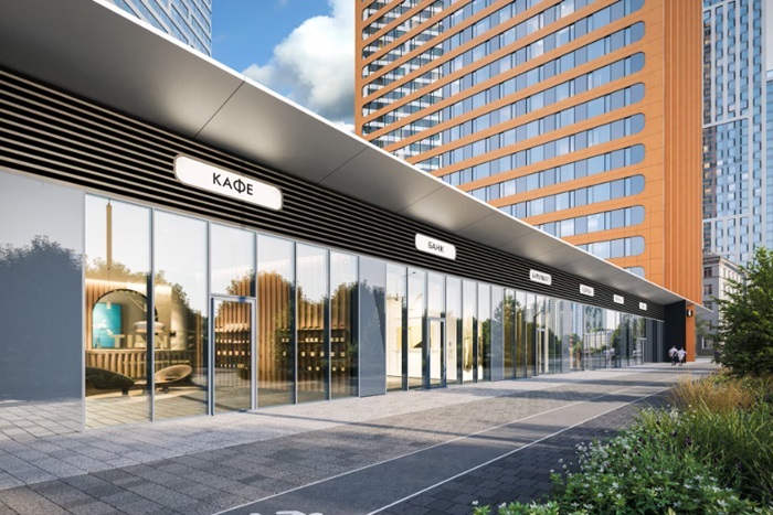 На первых этажах здания размещаются постаматы, колясочные и пеленальные комнаты. В лобби будет создана комфортная зона отдыха для встречи гостей, а также коворкинги с быстрым интернетом. Для проведения онлайн-конференций предусмотрены отдельные рабочие комнаты. Кроме того, в лобби устанавливаются стойки для мытья лап питомцев и гостевые санузлы.