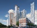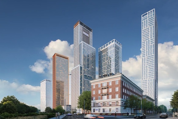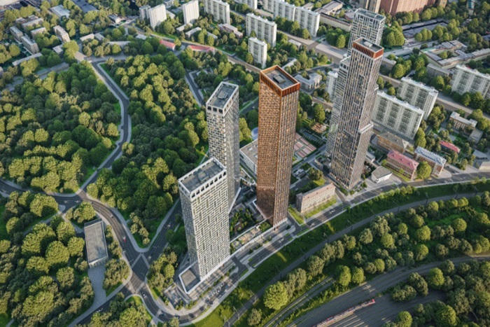 Шесть башен высотой от 41 до 57 этажей будут соединены общим стилобатом. Фасады зданий облицованы вентилируемыми металлическими панелями, которые создадут уникальный дизайн, делающий комплекс настоящей доминантой окружающей застройки Из панорамных окон жильцам откроется великолепный вид на столицу.