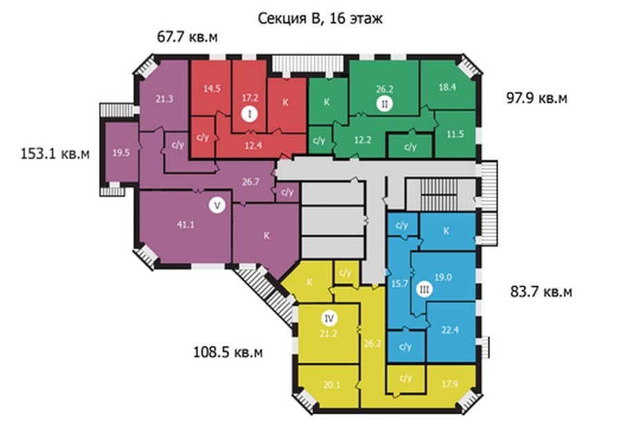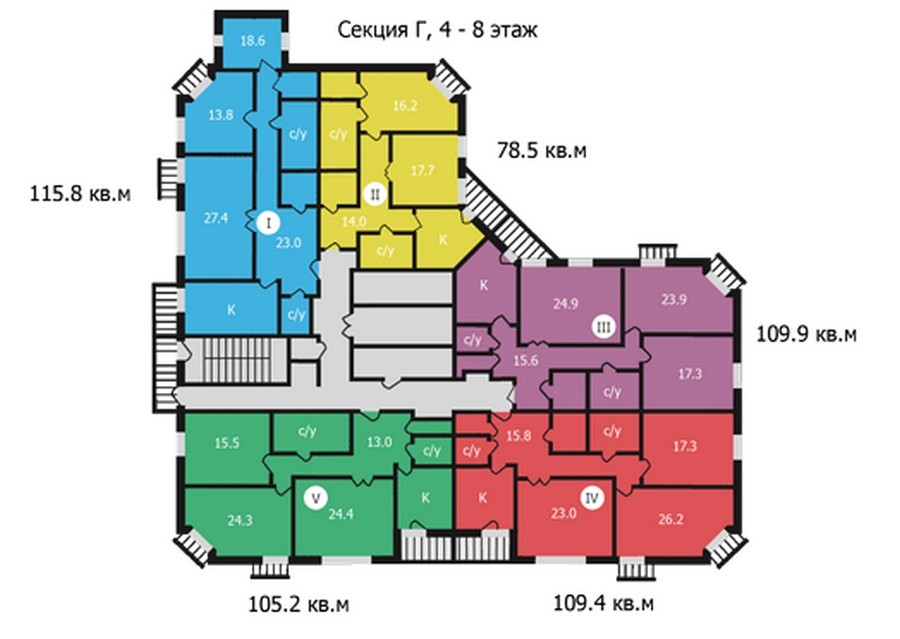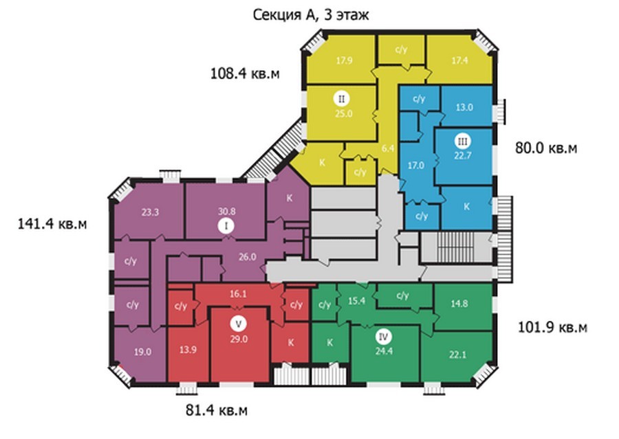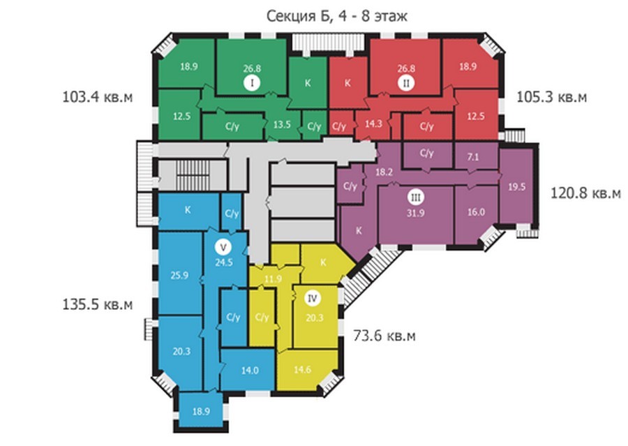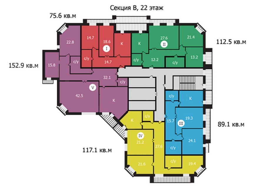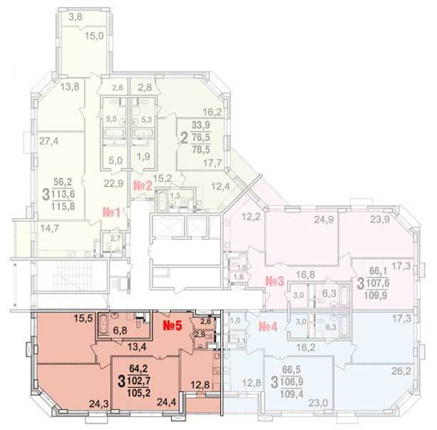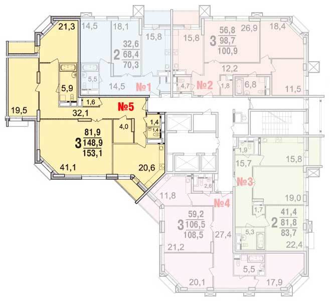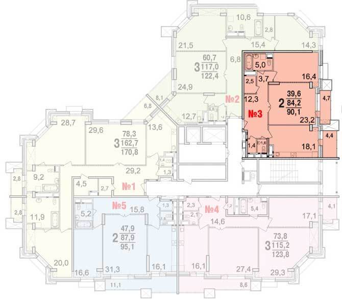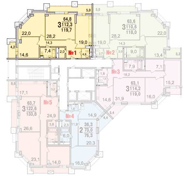 Площадь квартир:89.1 — 141.4 м2