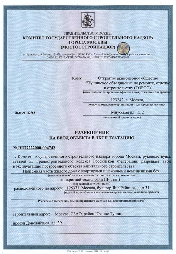 Застройщик: ТОРОС