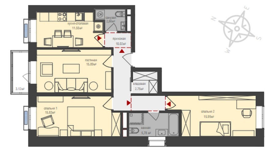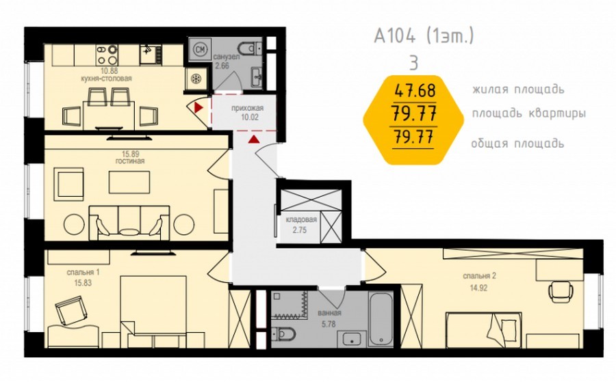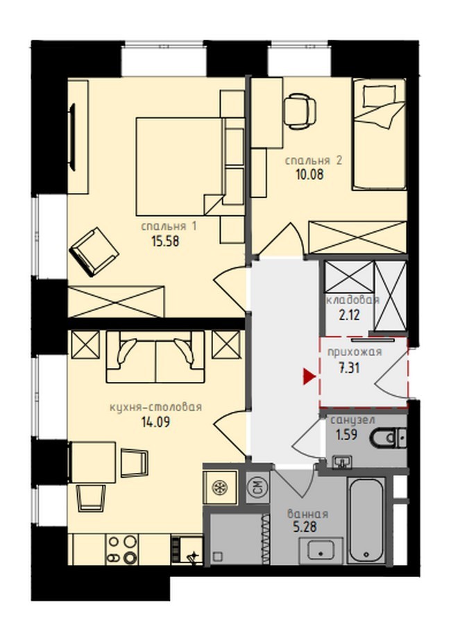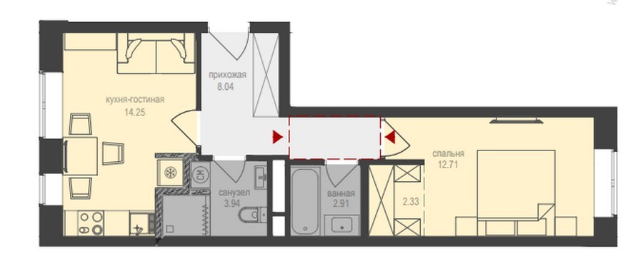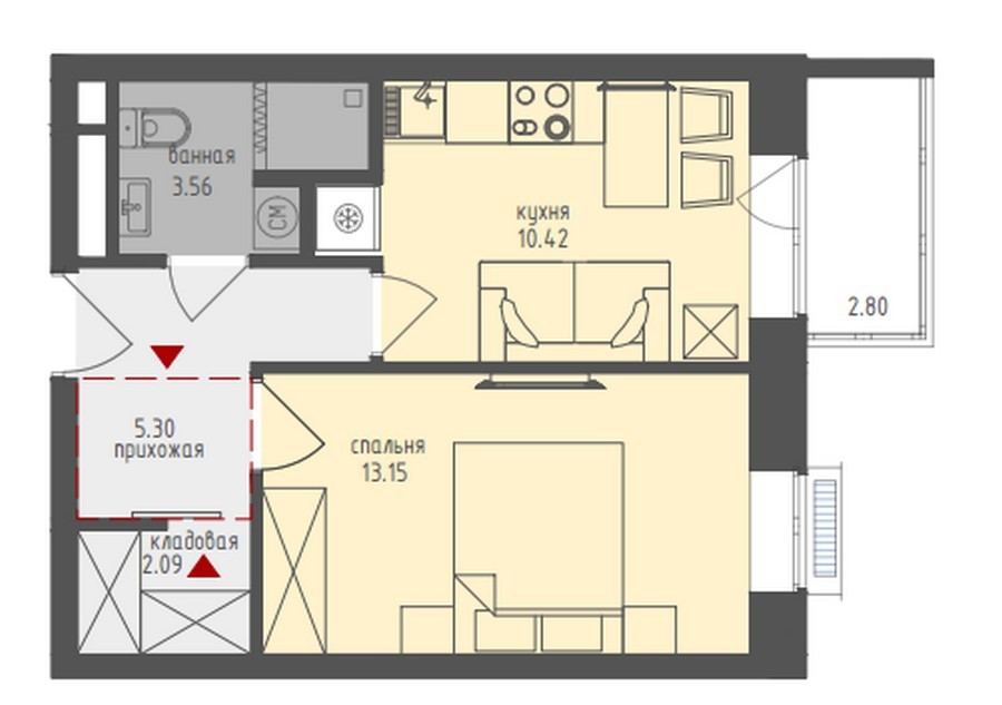 Квартиры в ЖК «Медовая долина» отличаются продуманными функциональными планировками, в каждой предусмотрены вспомогательные помещения под кладовые или гардеробные, удобные антресоли, ниши для установки крупногабаритной бытовой техники.
