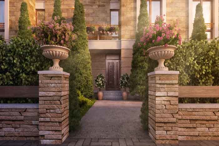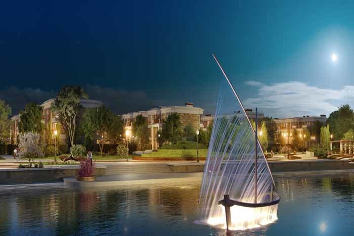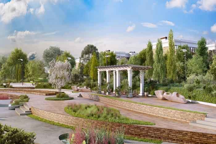 Закрытая территория в восемь гектар застраивается сблокированными коттеджами, выполненными по уникальным авторским проектам, общая жилая площадь составит порядка 40000 кв. метров. Всего запланировано 52 дома.