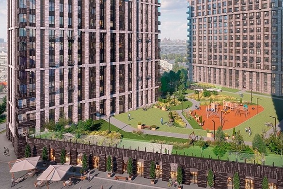 Большой закрытый двор озеленяется, там будут установлены детские и спортивные площадки, обустроены места для отдыха.