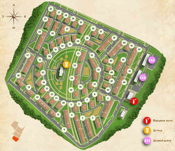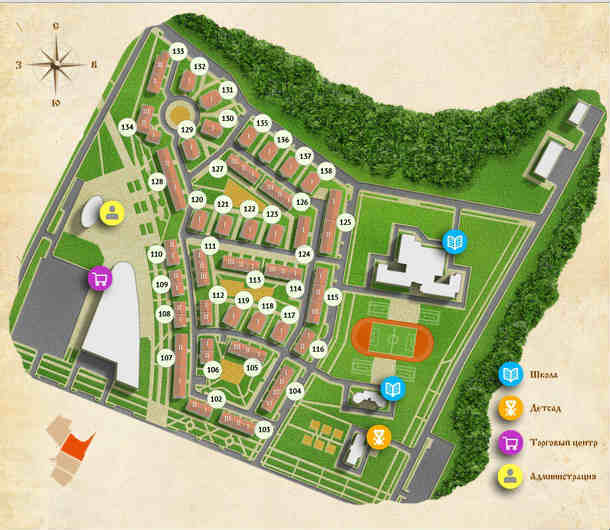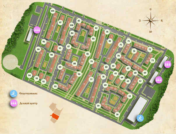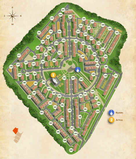 Это настоящий малоэтажный город — на территории в 120 гектар возводятся 219 трехэтажных жилых домов. Невысокая плотность застройки, многочисленные зеленые зоны отдыха, бульвары, аллеи создают впечатление тишины и приватности, как в небольшом коттеджном поселке.