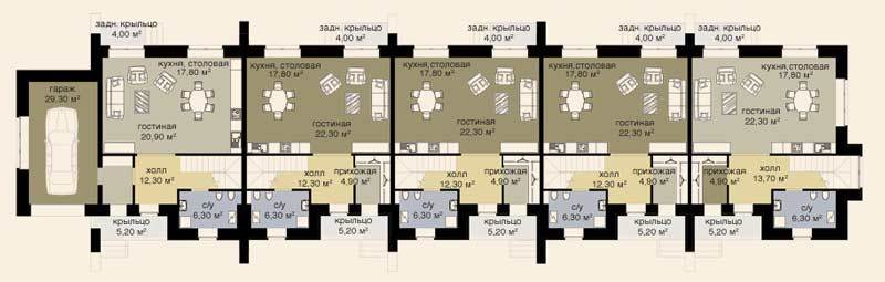| Тип здания | таунхаус | квадрохаус | дуплекс | коттедж |