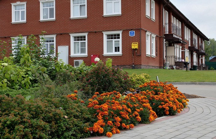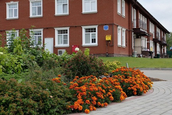 Единый выдержанный архитектурный стиль. Хорошее озелененное расположение.